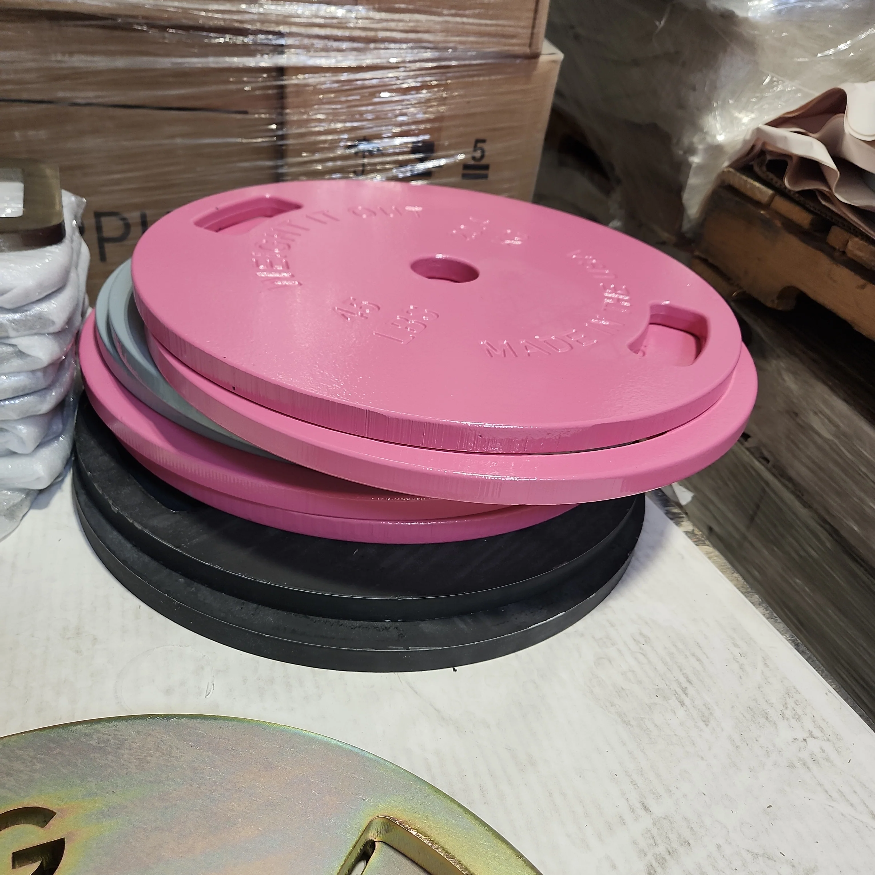 Trying something new with only "assorted" plates now. Receive either Gold OR Silver solid steel weight plates.
